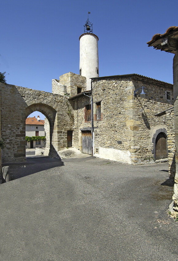 La partie ouest du Fort est occupée par la maison forte dont le logis conservé est actuellement partagé en deux propriétés. Doté d’une tour et d’une tourelle d’escalier, il est éclairé par des baies à croisées et des fenêtres à traverses permettant de le dater des XIVème ou XVème siècles. En revanche, les communs et le donjon circulaire qui occupaient l’espace au Nord ont disparus, de même que la tour occidentale de la porte nord, dont on peut encore lire la trace dans la courtine. La porte nord et la tour qui y est accolée, ainsi que le porche de l’église, daté de 1588, sont inscrits à l’Inventaire supplémentaire des Monuments Historiques. |