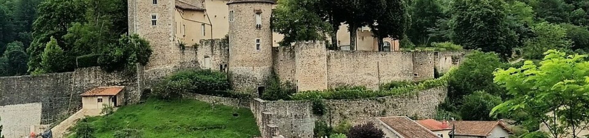 Le château de Châteldon est mentionné pour la première fois en 1200 : aux mains des Saint-Géran, il relevait de la mouvance des sires de Bourbon, dont les droits furent alors contestés par le comte d'Auvergne. La terre fut vendue successivement aux Beaujeu (1283), puis aux Aycelin (début du XIVe siècle) : les uns et les autres continuèrent à en faire hommage aux sires de Bourbon. Dans le second quart du XIVe siècle, Gilles Aycelin obtint la création d'un marché (l'abbé et les habitants de Ris tentèrent de s'y opposer, 1344-1353/1355) et aurait donné l'autorisation de fortifier le village. À la fin du premier quart du XVe siècle, Charles de Bourbon rechercha l’alliance du chef des Ecorcheurs, Rodrigue de Villandrando : il négocia le mariage de ce dernier avec sa sœur naturelle et, profitant d’une situation successorale favorable consécutive à l’extinction de la dynastie des Aycelin, il assigna le château de Châteldon aux époux. Rodrigue de Villandrando, seigneur de Châteldon pendant quelques années, fit faire des réparations au château (1433-1436). Un couvent de Cordeliers fut fondé en 1463, consacré en 1472. |