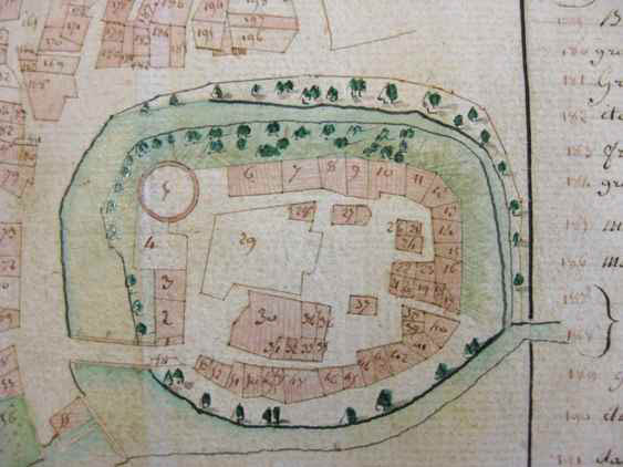 Le fort se présente sous la forme d'un rempart quadrangulaire d'une épaisseur de 1,80m flanqué à son angle nord-est d'un donjon du XIIIème et abritant en son centre une église attestée en 1124 et dont les éléments les plus anciens sont de type roman. Le ruisseau actuellement nommé Le Joron alimentait des douves qui faisaient le tour de la fortification. La basse cour a commencé à être lotie vraisemblablement à l'époque de la guerre de 100 ans afin que les villageois puissent protéger leurs biens des brigands. |